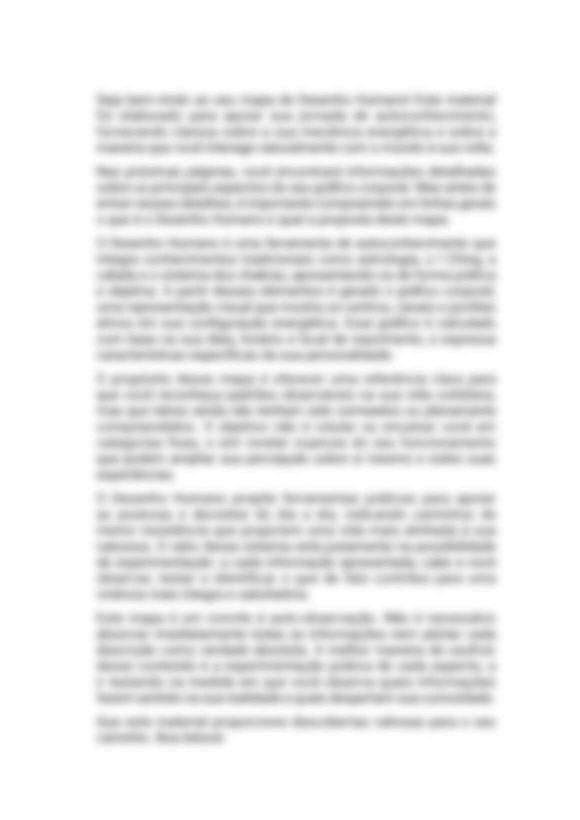 O Desenho Humano é um sistema de autoconhecimento que se baseia na astrologia. A partir dos seus dados de nascimento, ele calcula um mapa visual da sua energia, que mostra, por meio de centros, canais e portões, onde sua energia é mais constante e onde você tende a absorver influências externas. A proposta do mapa é detalhar sua mecânica energética, oferecendo uma base funcional para a aplicação do sistema no seu dia a dia.